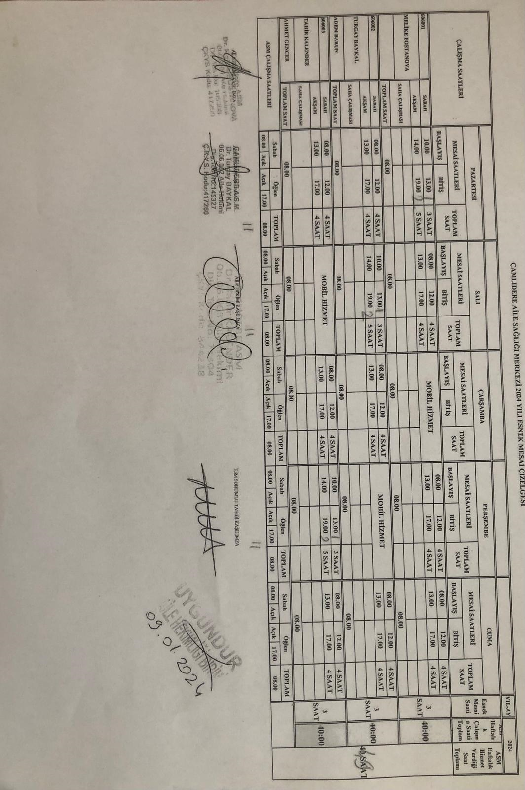 Çalışma saatleri
